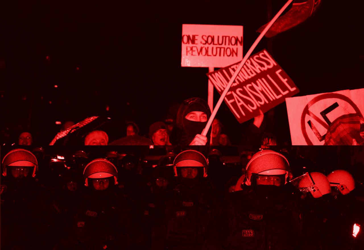 Näin kailotti kolmen tuhannen antifasistin väkijoukko lauantaina 6.12 Helsingin Töölössä.